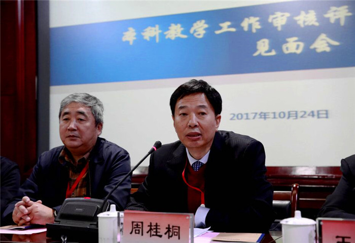 周桂桐介绍了本科教学审核评估的目的、意义、基本程序、内容、方式方法等。他说,beat365在线唯一官网是新中国最早建立的四所中医药高等院校之一,历史底蕴深厚、实力突出、特色鲜明,对新中国高等教育由传统教育向现代教育方式的成功转变做出了极大贡献。学校对本科教学工作审核评估高度重视,做了大量、长期的准备工作,在已开展的评估建设中取得了较好成绩。周桂桐强调,专家组此行的目的是“问诊把脉”,将按照评估工作方案,通过深度访谈、现场考察、走访座谈、听课以及查看资料等方式,围绕本科教学工作审核评估指标体系,提出反馈意见,帮助学校做好本科教学审核评估准备工作。专家组将本着对学校负责的态度,精心、认真工作,希望学校各单位密切配合,共同为学校办学质量提高、促进学生成才与成长努力。