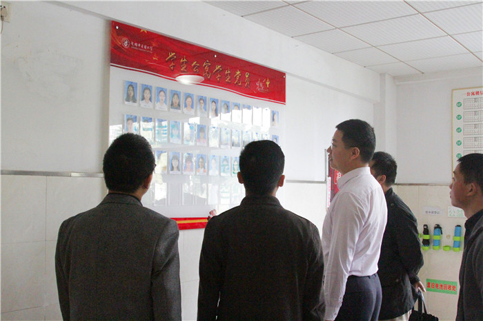 在听取汇报后,刘宏林高度肯定了学生公寓党总支在基层党建工作中的创新。他指出,通过党员在公寓亮身份,积极开展服务,形成了向上向善的正能量。希望学生公寓党总支能为同学们多做实事,真正将公寓打造成“先锋之家”“温馨之家”,兑现“有困难找党员”以及“学生公寓党总支在你身边”的承诺。