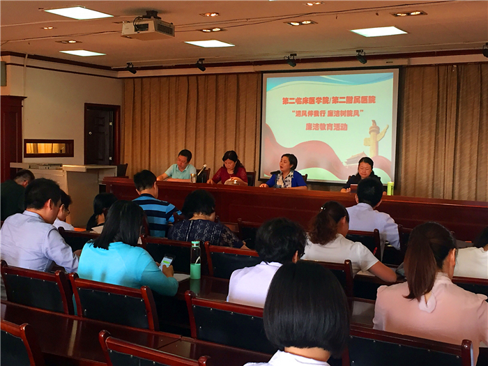 9月27日下午,第二临床医学院/第二附属医院举行“清风伴我行廉洁树院风”廉政警示教育活动。全院科级以上领导人员、教研室主任、党支部书记、医院科室主任、科室负责人、以及关键岗位工作人员参加活动。活动由院党委书记罗晓红主持。