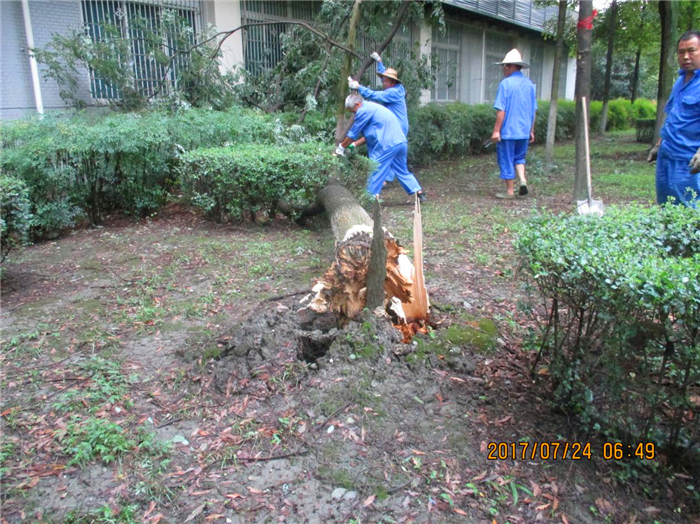 校园绿化中心:完成垃圾清运、植物花卉的正常养护及防洪排涝准备工作