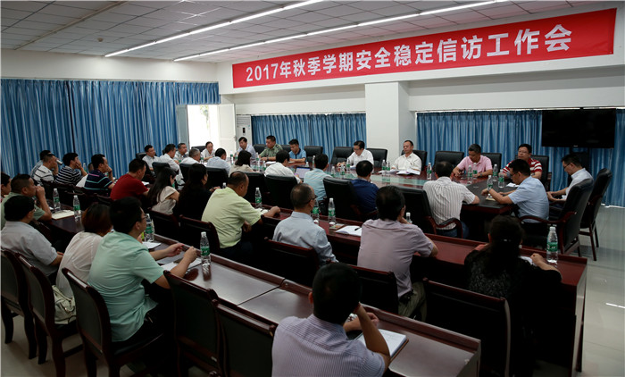 9月8日,学校秋季学期安全稳定信访工作会在温江校区体育馆会议室召开。学校党委书记刘毅、纪委书记延建明出席会议,学校维稳领导小组成员、职能部门和重点单位主要负责人及驻校内派老师共37人参加会议。会议由延建明主持。