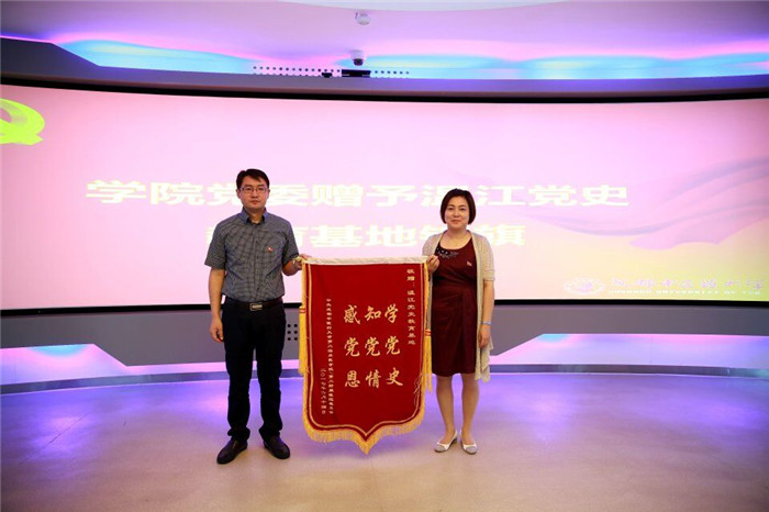 温江党史教育基地自2010年以来,积极指导第二临床医学院大学生党员和入党积极分子的教育和培养,罗晓红代表学院党委赠予温江党史教育基地“学党史知党史 感党恩”锦旗,罗晓红、彭晓英为温江区组织部、党史教育基地的领导、老师们颁发了“大学生党员教育优秀校外指导老师”的荣誉证书,以感谢他们对学院党建工作的支持和付出。