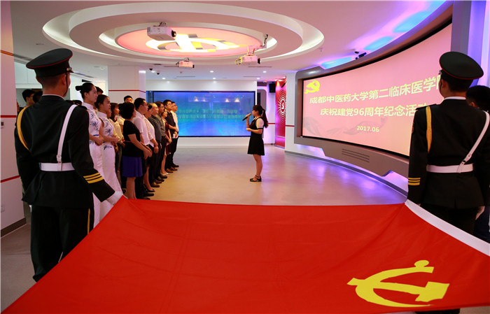 6月14日上午,第二临床医学院在温江党史教育基地举行庆祝中国共产党成立96周年纪念活动。温江区区委组织部副部长、区委党建办主任官明辉同志,温江区区委组织部党员教育中心主任陈春同志,beat365官网党委组织部/统战部副部长杨胤清同志,第二临床医学院党委书记罗晓红、副书记彭晓英和学院全体学生支部书记及34位学生党员、预备党员参加纪念活动。活动由学院2013级学生党支部书记郑勇凤主持。