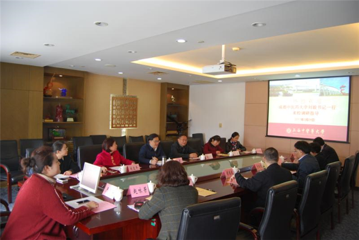 3月29日,学校党委书记刘毅、副校长刘旭光带领科技处处长刘友平,机关党委书记、组织部副部长罗萍,党政办副主任马雪梅,发展规划处副处长吴曦赴上海中医药大学调研考察。