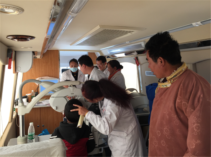 眼科专家袁晓辉等七位专家为来自全县各乡镇300余名藏族同胞进行义诊。医护团队应用四川省视力保护科普基地“流动科普馆”“七合一”智能机器人、全自动眼底照相机、裂隙灯显微镜等先进眼科设备,为当地人民群众提供医学视力检查服务和专业的眼部检查,通过远程云服务出据专业诊疗数据报告,并建立详细、全面的眼健康档案。