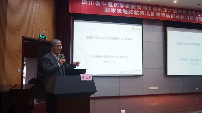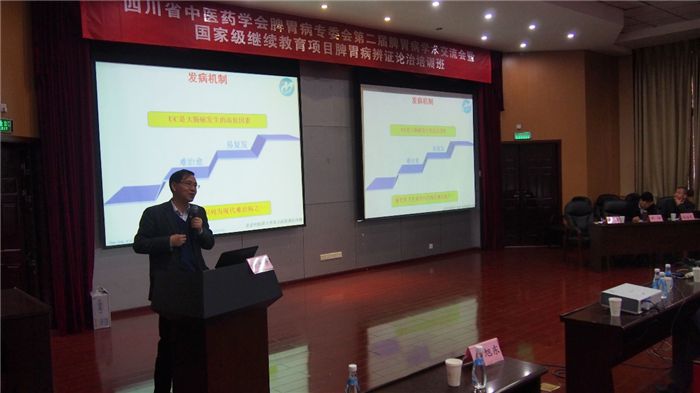 beat365官网梁繁荣教授和吴曦教授作主题为《针灸治疗功能性消化不良的循证评价及生物学机制研究》的报告,展示针灸在功能性胃肠病方面的研究成绩。学会顾问李培教授、汤一新教授分别作主题为《慢性萎缩性胃炎中医诊治的体会》《疗效是检验医学医术的根本标准在脾胃领域的临床实践》的报告;冯培民主委、肖国辉副主委、张志华副主委、孔文霞副主委分别作主题为《谈中医脾胃病疑难重症的辨证体会》《半夏泻心汤治疗脾胃病临证心得》《和法在脾胃病中的运用体会》《胃食管反流病中医诊治新思路》的报告。华西医院中西医结合科薛平教授,临床医学院/附属医院龚枚、梁超、张怡三名教授及来自市、县中医院专家针对消化临床热点作学术报告及交流。