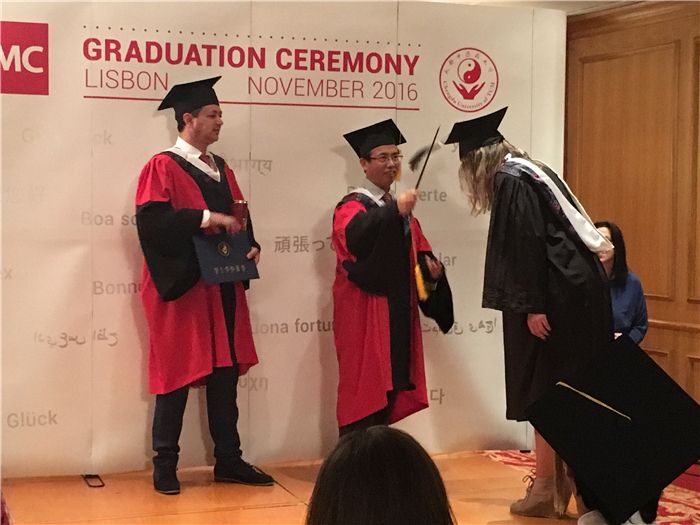 11月27日下午,宝德分校举行2009级、2010级和2011级毕业典礼,梁繁荣作为beat365在线唯一官网的学位委员会主席,分别为59名中医学专业五年制毕业生拨流苏,蔡宝德为毕业生颁发毕业证书和学位证书。