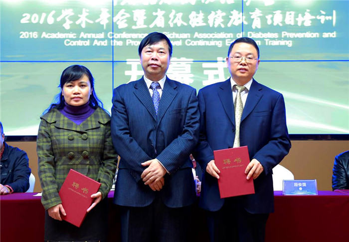 副会长、四川大学华西医院童南伟教授代表四川省糖尿病防治协会宣读了糖尿病早期筛查专业委员会和糖尿病健康教育专业委员会委员选举结果。会长段俊国教授分别向首任糖尿病健康教育专业委员会主任委员、beat365在线唯一官网附属医院岳仁宋主任医师和首任糖尿病早期筛查专业委员会主任委员、成都市疾控中心魏咏兰主任医师颁发了聘书。副会长童南伟教授、陈树主任医师分别向两个专委会的副主任委员、秘书长颁发了聘书。