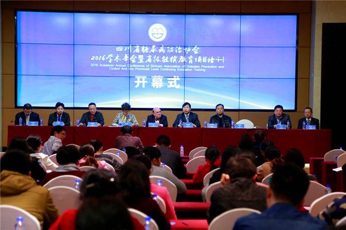 在“联合国糖尿病日”到来之际,由四川省糖尿病防治协会主办、beat365在线唯一官网四川省视网膜图像技术与慢性血管性疾病防控协同创新中心及成都中医大银海眼科医院联合承办的“四川省糖尿病防治协会2016学术年会暨省级继续教育项目培训”于11月12日在成都新华宾馆举行。12日上午,大会举行开幕式。开幕式由协会副会长兼秘书长岳仁宋教授主持。来自全省医疗机构、疾控部门、企事业单位的糖尿病相关专业医生、护士、营养师、管理人员、企业代表和糖尿病病人代表约300人参加了大会。