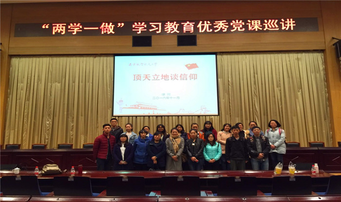 南京航空航天大学能源与动力学院党委副书记徐川以“顶天立地谈信仰”为主题,为全体人员上了一堂生动的专题党课。他用轻松幽默的语言讲党课,用更贴近学生的方式,解答同学们对入党的困惑,引导学生树立正确的入党动机,赢得老师和同学们的阵阵掌声。在场师生纷纷表示,聆听了此次讲课后收获很大,原来党课也可以讲得如此精彩,政治理论用生动的案例来剖析也如此富有吸引力,对今后开展党务工作很有启发和帮助。