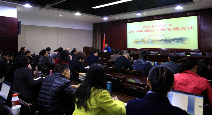 11月16日上午,学校在温江校区五会议室举办2016年统战工作专题培训。学校党委常委、副厅级调研员徐廉作了《党的统一战线理论基本知识》的专题讲座,党委统战部负责同志就学校统战工作的历史现状、学校基层党组织统战工作的内容和方法进行了专题讲解。全校各分党委/党总支书记、统战委员和统战信息联络员共计约50人参加了培训。培训会由党委统战部长王军主持。