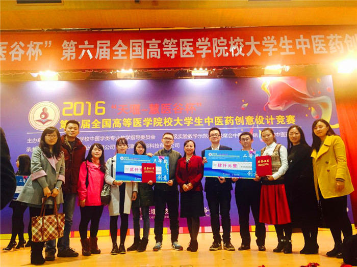 11月12日, 2016年“天堰-慧医谷杯”第六届全国高等医学院校大学生中医药创意设计竞赛决赛在天津中医药大学圆满落幕。本次比赛教育部高等学校中医学类专业教学指导委员会、国家级实验教学示范中心联席会中医学科组、天津中医药大学共同主办。beat365官网由临床医学院学生组成的两支参赛队伍在临床医学院党委副书记田理教授、分团委书记杜晓娟、教务处杨帆、创客联盟指导老师高山的带队和指导下荣获佳绩,其中,王瑞、史靖儒、关欣团队的作品“多功能可换芯中药手环”荣获产品组二等奖,张鲜花、龙思羽、郑浩文团队的作品“小中医成长日记”荣获平面组三等奖。