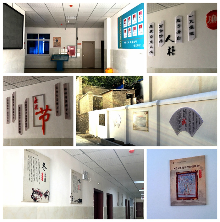 学校高度重视精准扶贫工作,帮扶得荣县卫生系统的文化建设是众多任务之一。在学校党政办、对外合作处、计财处和国资处等部门的通力协助下,由中医药文化中心根据医院文化建设规范和藏族文化特色,协调考虑土建部分的装饰装修风格,对得荣县第二人民医院的文化建设进行了精心规划、设计,制定具体实施计划并组织实施。内容包括功能标识系统、医疗文化宣传系统和廉政文化宣传系统,功能标识包括户外标识和院内科室牌、病房牌、床头牌、禁令标识、温馨提示等。经过数月的艰苦努力,克服高原反应和异地施工等诸多困难,顺利完成了医院的导示系统、医疗文化宣传系统和廉政文化系统等文化设施建设。
