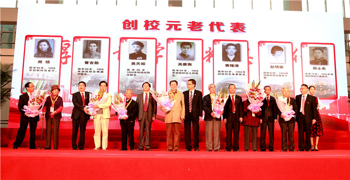 会上,还举行了学校领导为7位创校元老代表颁发纪念章并献花、在校学生为19位杰出校友代表献花、6位中医名师传承拜师仪式和4家企业捐赠仪式等活动。