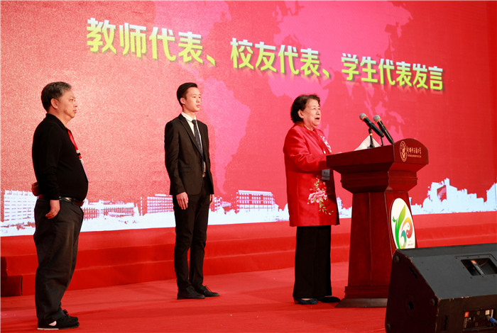 教师代表、国医大师刘敏如教授,校友代表、太极集团董事局主席白礼西,学生代表、针灸推拿学院2014级邓嘉帅同学分别进行发言,恭贺学校60华诞,感谢学校培养,祝福学校未来更加辉煌。刘敏如大师一句“爱我母校,兴我国医”的话语,代表了全校师生对振兴中医药事业、推进学校“双一流”建设的坚定信念。