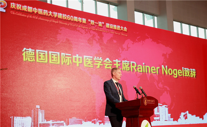 德国国际中医学会主席Rainer Nogel致辞,向beat365在线唯一官网60华诞表示祝贺,赞扬了中医药在国际上的传播和影响,希望beat365在线唯一官网继续成功开拓国际交流与合作,为世界健康事业做出更大贡献。