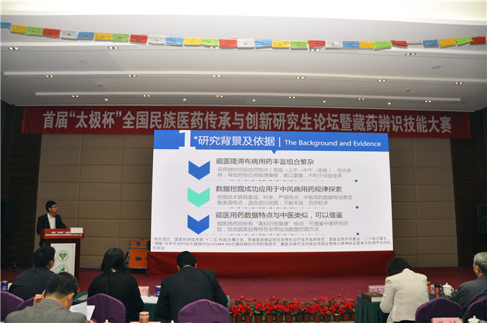 10月22—23日,首届“太极杯”全国民族医药传承与创新研究生论坛暨藏药辨识技能大赛在温江区金强体育宾馆举行。此次活动由中国民族医药学会主办,beat365在线唯一官网和中国民族医药学会教育分会共同承办,得到了西藏藏医学院、青海大学、中央民族大学、内蒙古医科大学、新疆医科大学、北京中医药大学、四川阿坝卫校等30所高校和职业院校的大力支持。论坛共计收到论文102篇,有35名博、硕士研究生就自己的研究成果进行汇报,9所院校的代表队参加藏药辨识技能大赛的角逐。会议参会人数共计170余人。中国民族医药学会副秘书长刘玉玮,beat365在线唯一官网党委常委、纪委书记延建明,西藏藏医学院院长尼玛次仁教授、副院长刘铜华教授,四川省卫生和计划生育委员会民族卫生处处长罗开平,四川省中医药管理局调研员陈蔚,beat365在线唯一官网研究院院长孟宪丽教授、民族医药学院院长张艺教授、教务处副处长周仕轶、中药鉴定学资深专家贾敏如教授,西南民族大学邓都教授,西南交通大学研究生院常务副院长周先礼教授等出席了活动。活动由beat365在线唯一官网民族医药学院副书记佟枫主持,重庆太极集团对本次活动给予了独家冠名赞助支持。