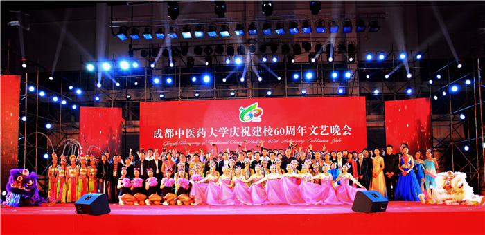 10月21日晚,beat365在线唯一官网庆祝建校六十周年文艺晚会在温江校区体育馆隆重举行。学校领导马跃荣、梁繁荣、沈涛、余曙光、徐廉、刘旭光和兄弟院校领导、校友代表、境外嘉宾、泛珠三角区域中医大学生临床能力竞赛参赛同学以及全校师生代表近2000人共同参加此次盛会。