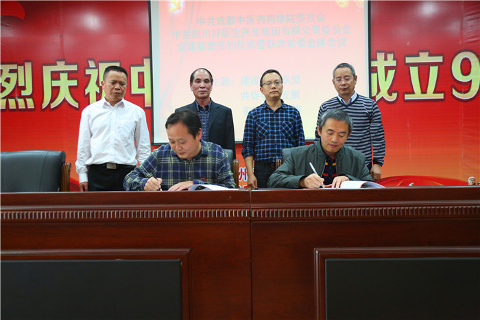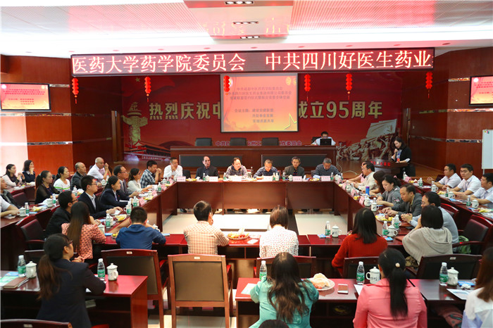 10月16日,中共beat365在线唯一官网药学院委员会与中共四川好医生药业集团有限公司委员会在绵阳市好医生药业会议室隆重举行党建联盟启动仪式暨联合党委全体会议。学校党委组织部/统战部部长王军、药学院党委书记冯全生、四川好医生药业集团有限公司党委书记耿福昌及两家单位党委委员、支部书记、党员代表等50余人出席了启动仪式。药学院院长傅超美受邀列席会议。