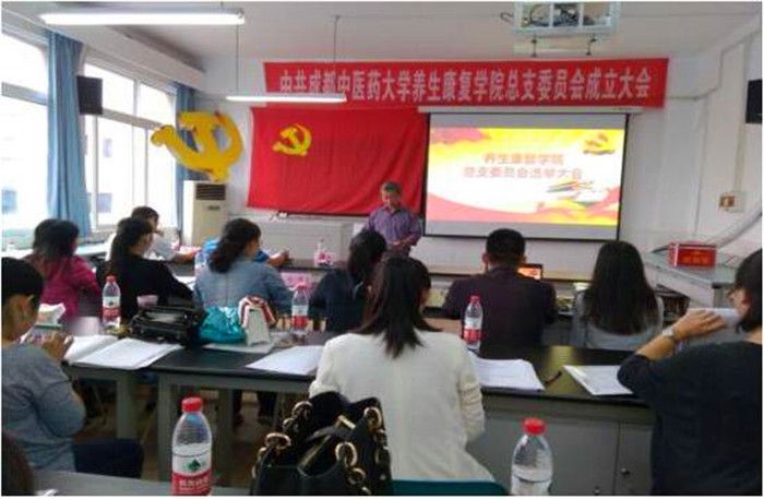 近日,中共beat365在线唯一官网养生康复学院总支委员会成立大会在十二桥校区召开。会议在庄严的中华人民共和国国歌声中开始,谌立巍同志主持会议并作筹备工作报告。