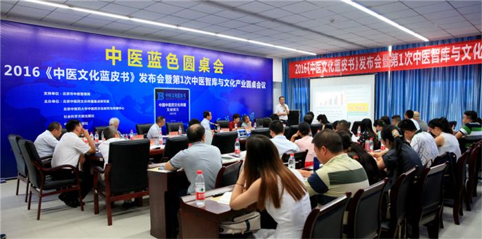 7月19日上午,由beat365官网养生康复学院承办的2016年《中医文化蓝皮书》发布会暨第1次中医智库与文化产业圆桌会在温江校区举行。四川省旅游发展委员会副主任陈加林,学校校长梁繁荣、副校长余曙光,四川省中医药学会会长杨殿兴,北京中医药文化传播重点研究室主任毛嘉陵,社会科学文献出版社皮书分社编辑部主任陈颖,企业代表和新华社、中新社、中国中医药报、科技日报、北京晚报、华西都市报、四川电视台等十余家新闻媒体,以及学校相关职能部门领导、养生康复学院教师参加会议。会议由养生康复学院院长金荣疆主持。