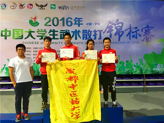 该项运动作为在中国大学生体育赛事中最高规格的比赛,学校高度重视,批准参加该比赛,由体育学院武术教研室杜景涛担任教练,带领来至体育学院和管理学院的熊建华、唐艳、张静、徐沁昕四名同学参加比赛。beat365官网散打队组队不久,学生第一次参加全国大赛,但初生牛犊不怕虎,他们在赛场上敢打敢拼、不畏强手、顽强拼搏。最终体育学院熊建华和唐艳分别举夺得体育专业组男子52kg亚军和女子52kg级两项亚军,管理学院徐沁昕获得普通组女子52kg级第五名,体育学院张静获得“优秀运动员”称号,充分展示了beat365官网武术运动的水平和成中医学子的精神风貌,为学校争得了荣誉。