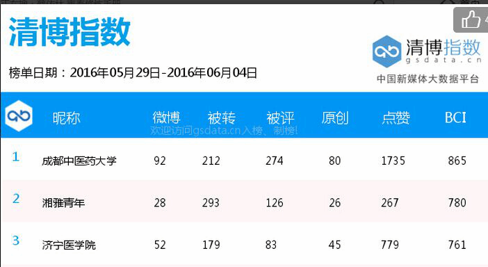 学校官方微博在医学院校微博影响力周榜中位居首位(5.29-6.4) 发布时间:2016-06-12 11:46:00 浏览次数: 次 【字体:小 大】 (编辑/任翔) 【打印正文】 上一条:民族医药学院与企业加强产学研合作 下一条:学校官方微博在医学院校微博影响力周榜中位居首位(5.29-6.4)