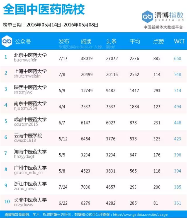学校官方微信在全国中医药院校周榜中位居前五名(5.1—5.14) 发布时间:2016-05-18 09:47:00 浏览次数: 次 【字体:小 大】 (编辑/任翔) 【打印正文】 上一条:学校官方微信在全国中医药院校周榜中位居前五名(5.1—5.14) 下一条:学校官方微博在医院院校微博影响力周榜中稳居首位(2016.4.17—5.07)