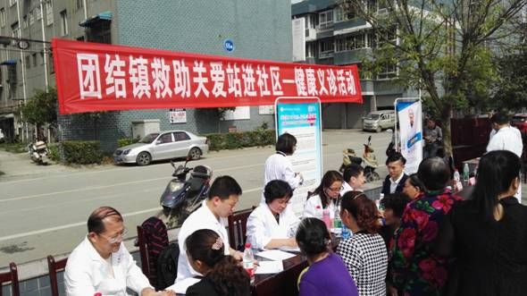 4月7日,成都市郫县团结镇救助关爱站启动暨团结镇社会救助专项基金成立仪式在团结镇永定社区广场举行,beat365官网基础医学院专家服务团在活动现场举办了“关爱百姓生活,真情服务群众” 义诊送健康活动。