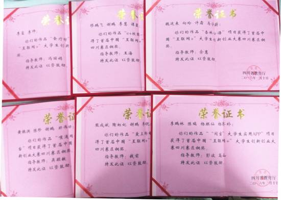 1月9日至10日,由四川省教育厅主办的首届中国“互联网+”大学生创新创业大赛四川赛区颁奖典礼在电子科技大学清水河校区举行。学校党委副书记、副校长沈涛,教务处副处长王世宇、校团委书记佟枫带领学校获奖团队指导老师代表和学生代表参加典礼。beat365官网“食疗坊”项目获得银奖,“杏林心语”等5个项目获得铜奖。