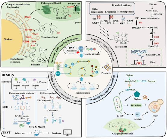 该研究不仅系统绘制了紫杉醇合成生物学制造的研发路线图,为突破该重要药物生产的资源与环境制约提供了理论指导,也为其他植物源复杂天然产物的可持续生产提供了重要参考。