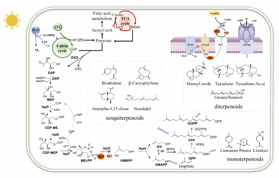 该研究不仅为利用蓝细菌细胞工厂异源合成植物源萜类化合物的理性设计与优化提供了系统的理论指导,也为其他高价值天然产物的生物制造提供了重要借鉴。