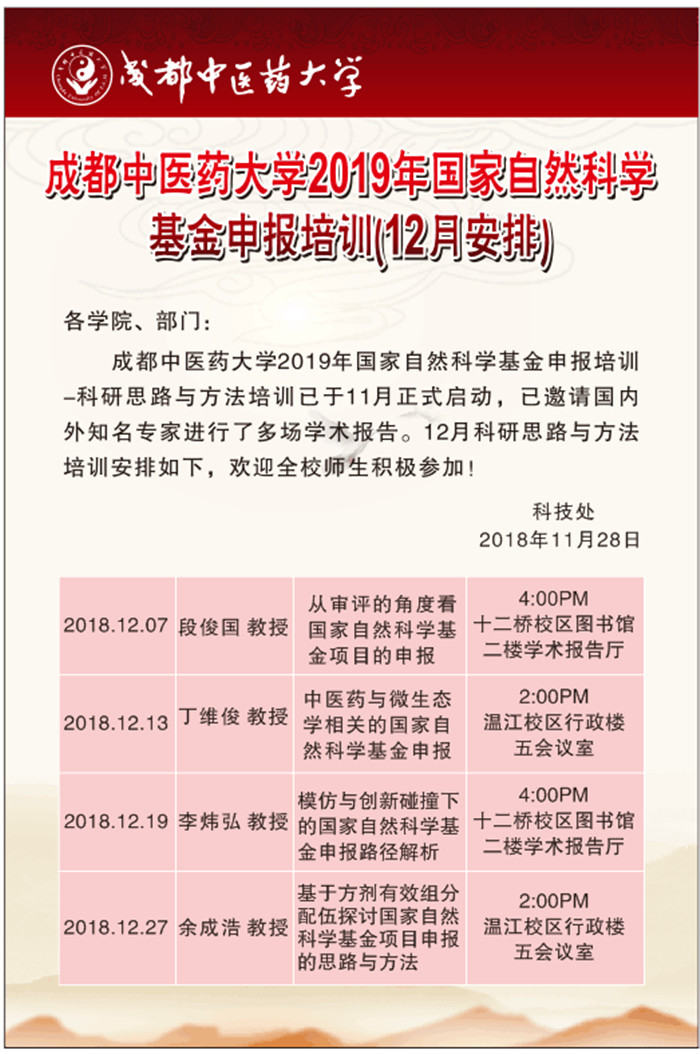 beat365在线唯一官网2019年国家自然科学基金申报培训(12月安排) 发布时间:2018-11-28 16:35:00 浏览次数: 次 【字体:小 大】 【打印正文】 上一条:beat365在线唯一官网2019年国家自然科学基金申报培训科学思路与方法培训 下一条:胡义扬教授应邀来beat365官网作国家自然基金选题及书写讲座