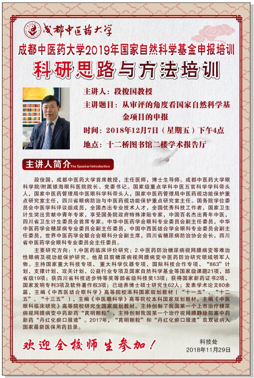 beat365在线唯一官网2019年国家自然科学基金申报培训科学思路与方法培训 发布时间:2018-11-30 10:10:00 浏览次数: 次 【字体:小 大】 【打印正文】 上一条:“岐黄”传承创新能力提升计划之马超英教授讲座 下一条:beat365在线唯一官网2019年国家自然科学基金申报培训(12月安排)