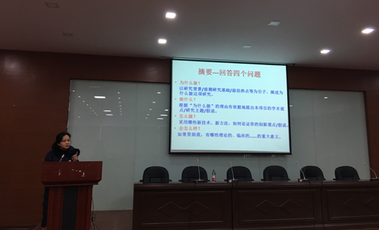 李炜弘教授主要从“模仿”与“创新”两方面对国家自然科学基金的撰写行讲解。她强调“模仿”是方法,“创新”才是灵魂。然后,她演示了如何利用国家自然科学基金委员会官方网站查询历年中标的标书信息,以进行“模仿”学习。李教授针对标书的题目、摘要、立项依据、研究内容、研究目标、研究方案、拟解决的关键问题、技术路线、可行性分析、创新性、研究基础及工作条件等方面在标书撰写上需要注意的问题进行逐一分析,并点明撰写技巧。在创新方面,李教授重点从“创新从哪里来”展开了阐述。最后,李教授以导师王米渠教授团队的发展为例,给在座的青年教师和同学们指明了基金选题和未来发展的方向。报告结束后,李教授对老师和同学们提出的一些在标书撰写方面的疑问进行了耐心细致的解答,并给予了很多极具建设性的宝贵意见。