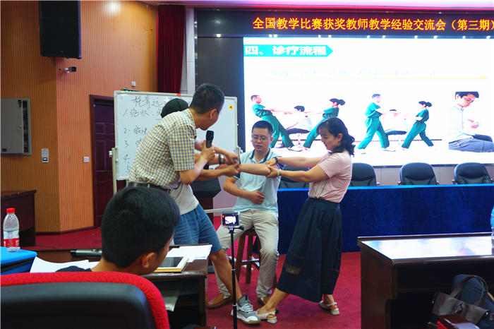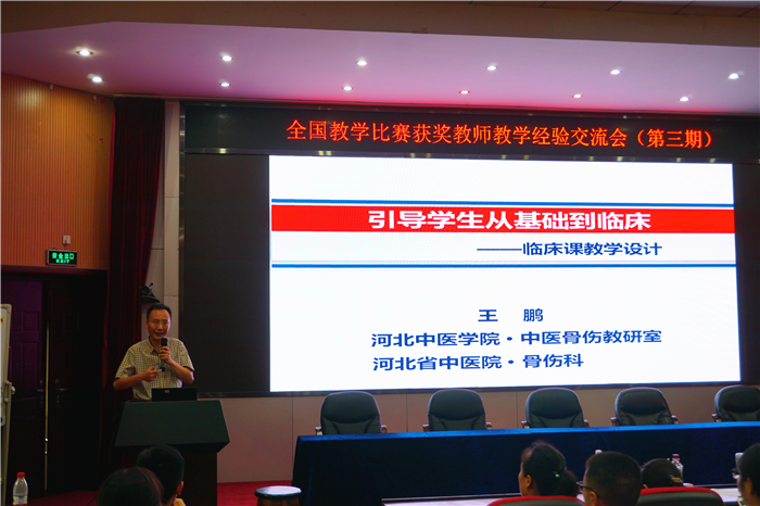 为不断夯实教师教学基本功,提升教师教学核心竞争力,学校教师发展中心联合临床医学院于6月19-20日举办第三期全国教学比赛获奖教师教学经验交流会。本次交流会邀请到五届“中医药社杯”全国高等中医药院校青年教师教学基本功竞赛中医临床高级组综合成绩一等奖获得者,河北中医学院附属河北省中医院骨伤科王鹏副教授前来作教学示范和教学经验交流。