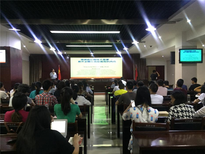 近日,台湾大学植物病理与微生物学系沈汤龙教授应邀来校作题为“预测癌症转移不是梦-胞外泌体在癌症进程中的作用”的学术讲座,全校师生100余人聆听讲座。讲座由医学技术学院副院长国锦琳主持。