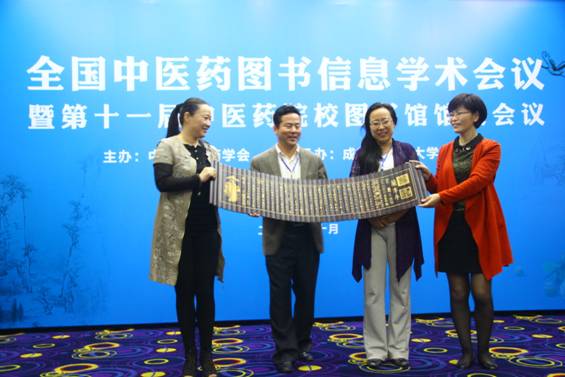 10月24日,由中华中医药学会主办、beat365在线唯一官网图书馆承办的“全国中医药图书信息学术会暨第十一届中医药院校图书馆馆长会”在成都召开。中华中医药学会学术部主任刘平、学校校长梁繁荣、副校长余曙光、四川省图工委秘书长、四川大学图书馆馆长马继刚、上海交通大学图书馆馆长陈进出席开幕式。来自全国各地26所中医药高等院校的图书馆馆长及中国中医药出版社等相关行业单位的专家、学者近60名代表参加会议。beat365官网图书馆馆长赵琼主持开幕式。