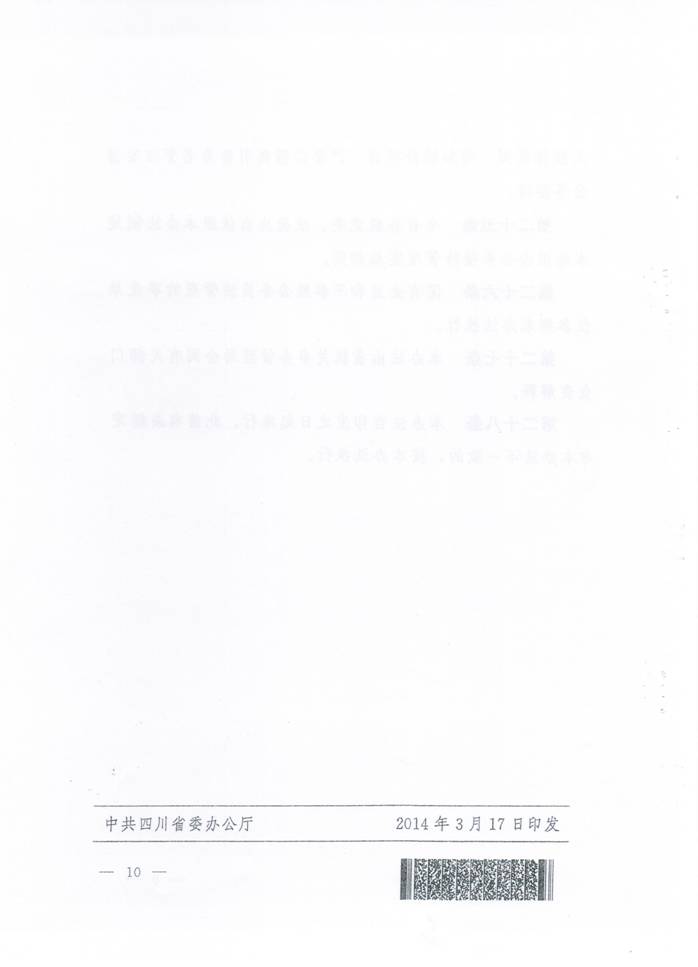 川委办〔2014〕11号-中共四川省委办公厅 四川省人民政府办公厅关于印发《四川省党政机关国内公务接待管理办法》的通知. 发布时间:2014-04-14 15:43:00 浏览次数: 次 【字体:小 大】 【打印正文】 上一条:关于实行校园临时交通管制的通告 下一条:计划财务处办理业务时间