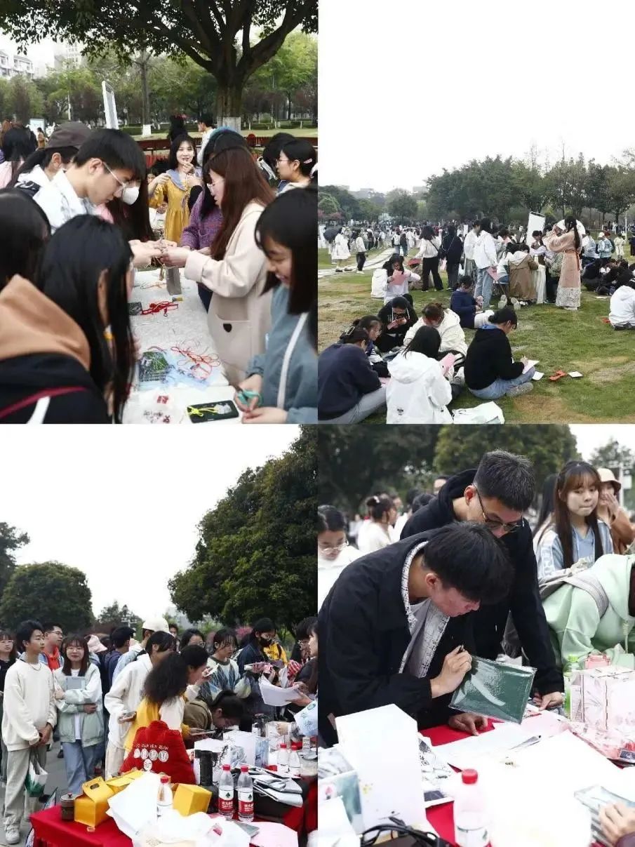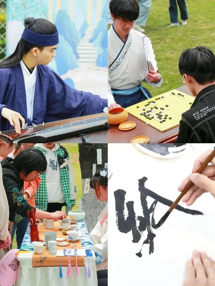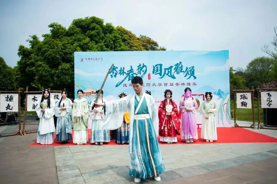 春和景明,惠风和畅,正是成中医大美时节, 3月30日和4月1日两天,一场别开生面的大型沉浸式传统文化体验活动在学校草坪-湿地景观区举行。活动以“杏林春韵·国风雅颂”--beat365在线唯一官网首届杏林雅集为主题,通过琴、棋、茶、诗等经典元素再现中式生活美学仪式,徜徉于百花环绕的“花间集市”,同学们可以沉浸式体验三十余项传统文化活动,5100余人次师生体验了古代文人朋友圈的社交活动。副校长曾芳,党委学生工作部(处)/招生就业处副处长杜娟、邱挺和学院分管学生工作领导、辅导员出席本次活动。