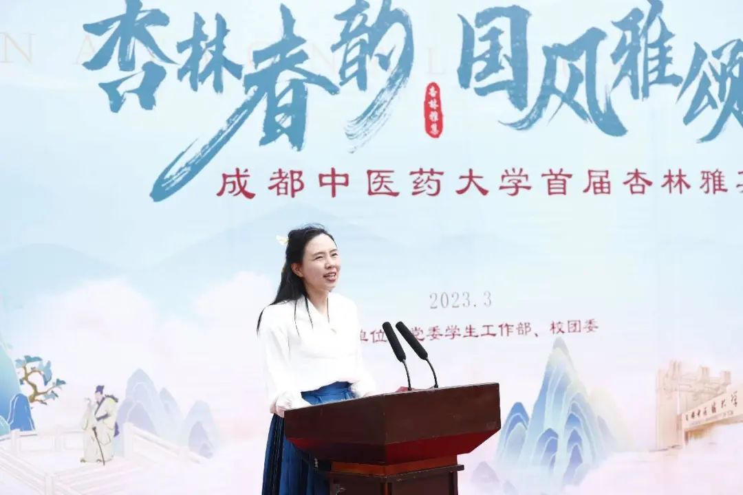 副校长曾芳为此次活动致辞。她谈到,党的二十大报告提出“推进文化自信自强,铸就社会主义文化新辉煌”,学校第三次党代会也提出了“遵循中医药高等教育发展规律,传承中华文明,坚定文化自信”,雅集是中华优秀传统文化的具象化表达形式。青年大学生要从传统文化中汲取不断前行的强大力量、坚定理想信念、厚植爱国主义情怀、加强品德修养、增长知识见识、培养奋斗精神、增强综合素质。同时中医认为,春主生发,动则升阳,学习之余,走出课堂,走进自然,张弛有道,劳逸结合,去感受春光里的勃勃生机和万物可爱。