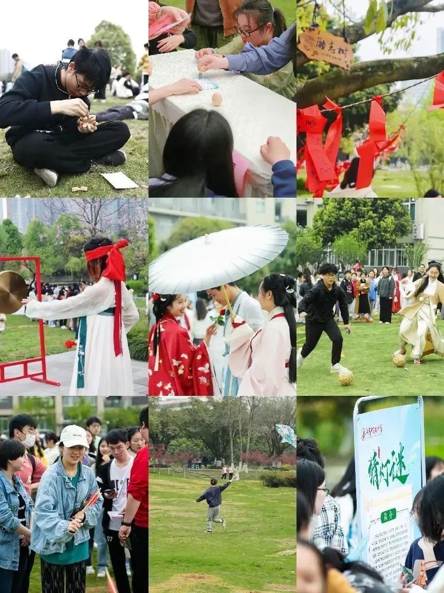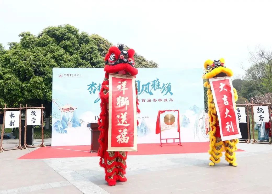 曾芳副校长的击春锣中宣布“杏林雅集”开市。本次活动遍邀全校师生共赏中国传统文化,磅礴有力的舞龙舞狮表演在锣鼓喧天中绽放光彩;优美典雅的汉服表演充分展现了古人“仁、义、礼、智、信”的道德内涵,更是纯善纯美的中国传统服饰艺术的重要象征。精彩的节目完美的呈现了中国优秀传统文化的魅力和感染力,全校师生纷纷跃跃欲试,很多师生身着传统服饰徜徉其间。师生们纷纷体验围棋、古琴、茶艺、民乐等传统古典工艺,沉浸在飞花令、灯谜、投壶、木射、蹴鞠、滚环、春锣、纸鸢、捶丸、结艺、剪纸、鲁班锁、竖蛋等活动。