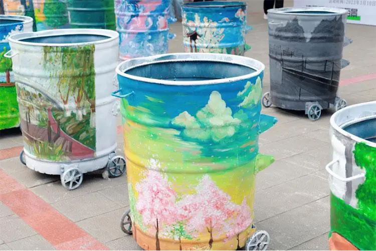 这一活动迅速吸引了热爱环保,富有创意的中医青年学子,他们踊跃报名,积极创作。校团委黄烛丹老师介绍,为了确保改造成本与效果,在“改妆”前需要先按照主题征集创意思路,通过纸上作画的方式进行作品初选。经前期学院推荐与个人报名,共征集作品40份。最终20幅作品通过综合评审,被推荐进入决赛。在正式创作前,后勤工人还为大铁桶刷了白色底漆,统一着装迎接艺术改造。