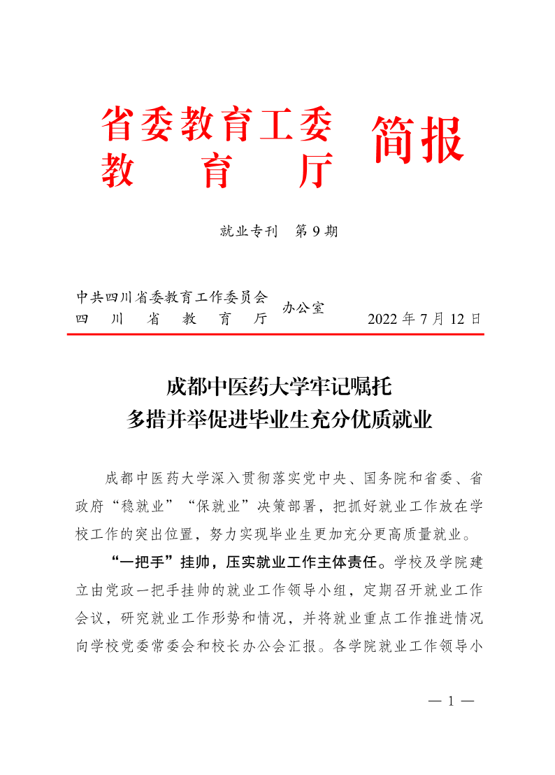 省教育工委简报:beat365在线唯一官网牢记嘱托 多措并举促进毕业生充分优质就业 发布时间:2022-07-20 00:00:00 浏览次数: 次 【字体:小 大】 【打印正文】 上一条:《光明日报》:破译药用植物的遗传密码 beat365在线唯一官网发布“千种本草基因组计划” 下一条:人民网:破译濒危药用植物的遗传密码 合力打造新时代“《本草纲目》”