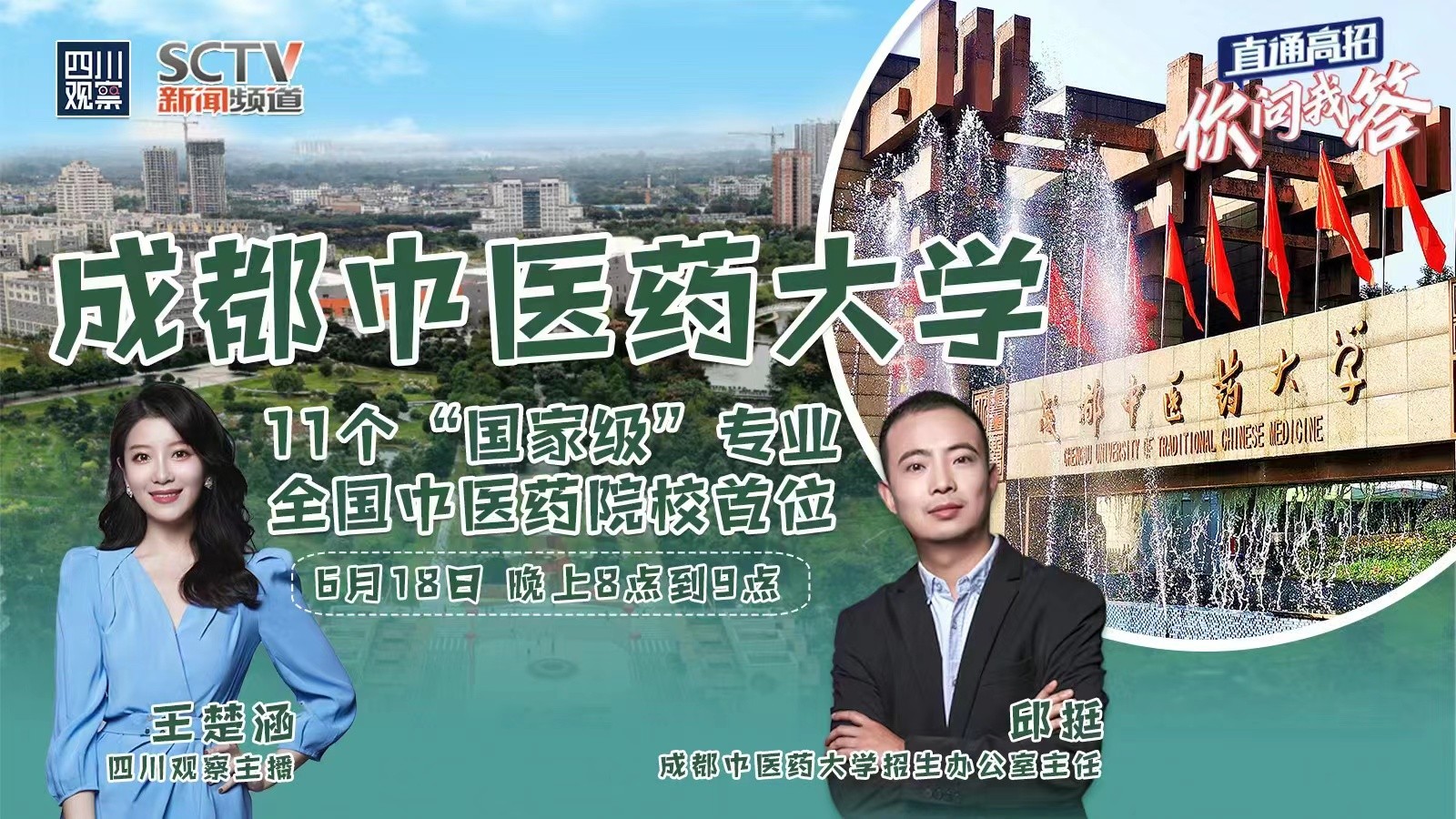 专家来支招啦!6月17日至28日,请锁定四川观察和四川广播电视台新闻频道联合推出的特别节目《直通高招 你问我答》。我们将联动川内十余所知名高校,为高考学子“答疑解惑”,提前打探学校最美风景、“最霸道”食堂、“最硬核”实验室……