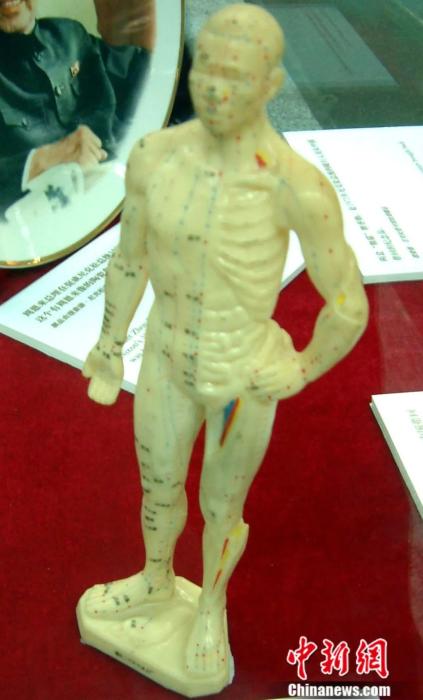1972年2月尼克松总统随员从中国带回的针炙人体模特。中新社发 井韦 摄