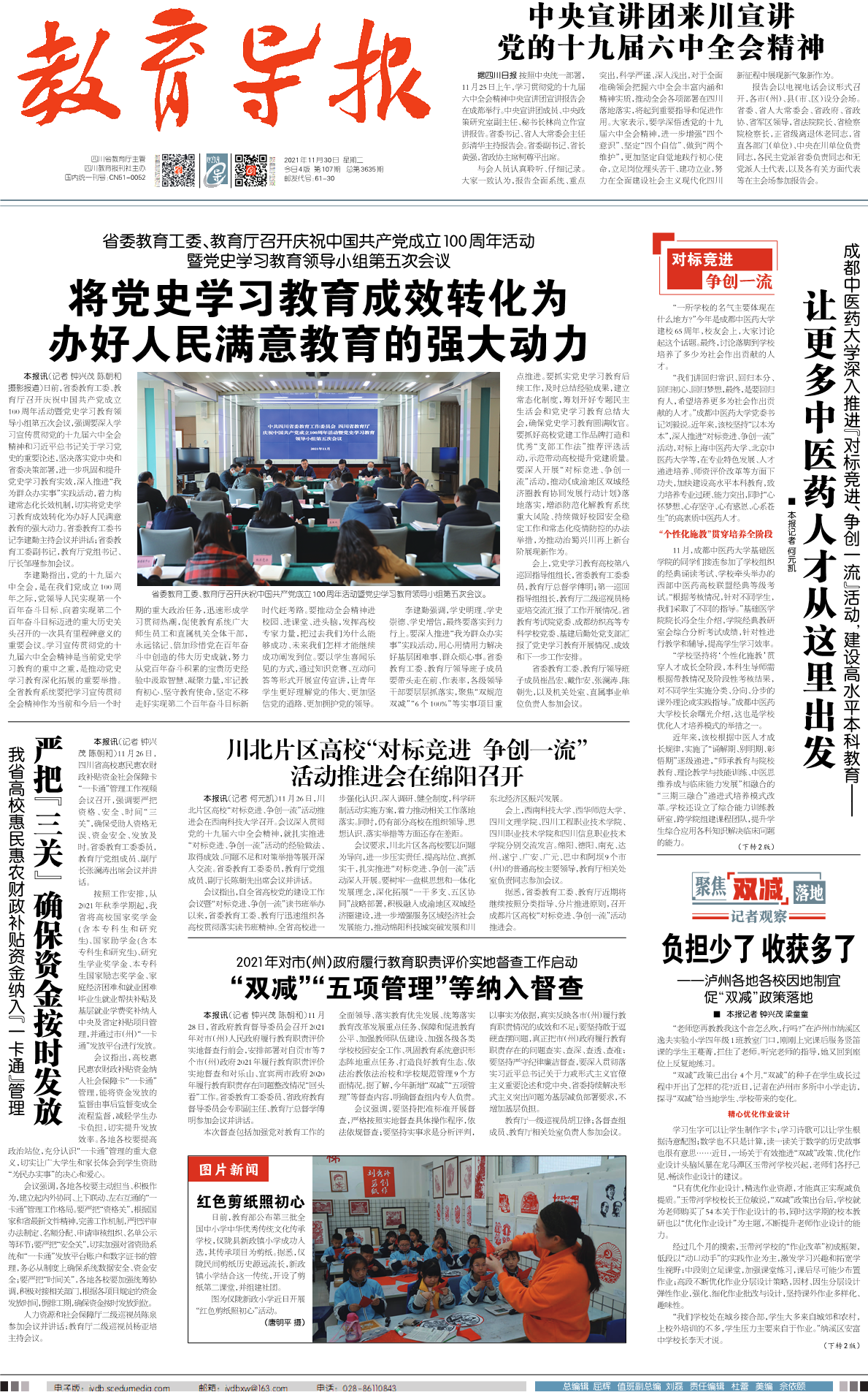 2021年11月30日,《教育导报》头版以《让更多中医药人才从这里出发》专题报道beat365官网深入推进“对标竞进、争创一流”活动,建设高水平本科教育情况。以下为报道全文: