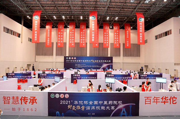 10月16日-17日,2021华佗杯全国中医药院校针灸推拿临床技能大赛在四川成都举行。来自北京、上海、辽宁、陕西、甘肃、山东、河北、湖南、福建等省份的33支代表队数百名选手同台竞技,相互交流,共同带来了一场针灸推拿知识与技能的盛宴。