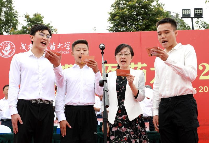 随后,十五名各学院本科学生代表与一名研究生代表上台,在beat365在线唯一官网针灸推拿学院/第三附属医院副院长赵凌的带领下,齐诵药王孙思邈所著的《大医精诚》。