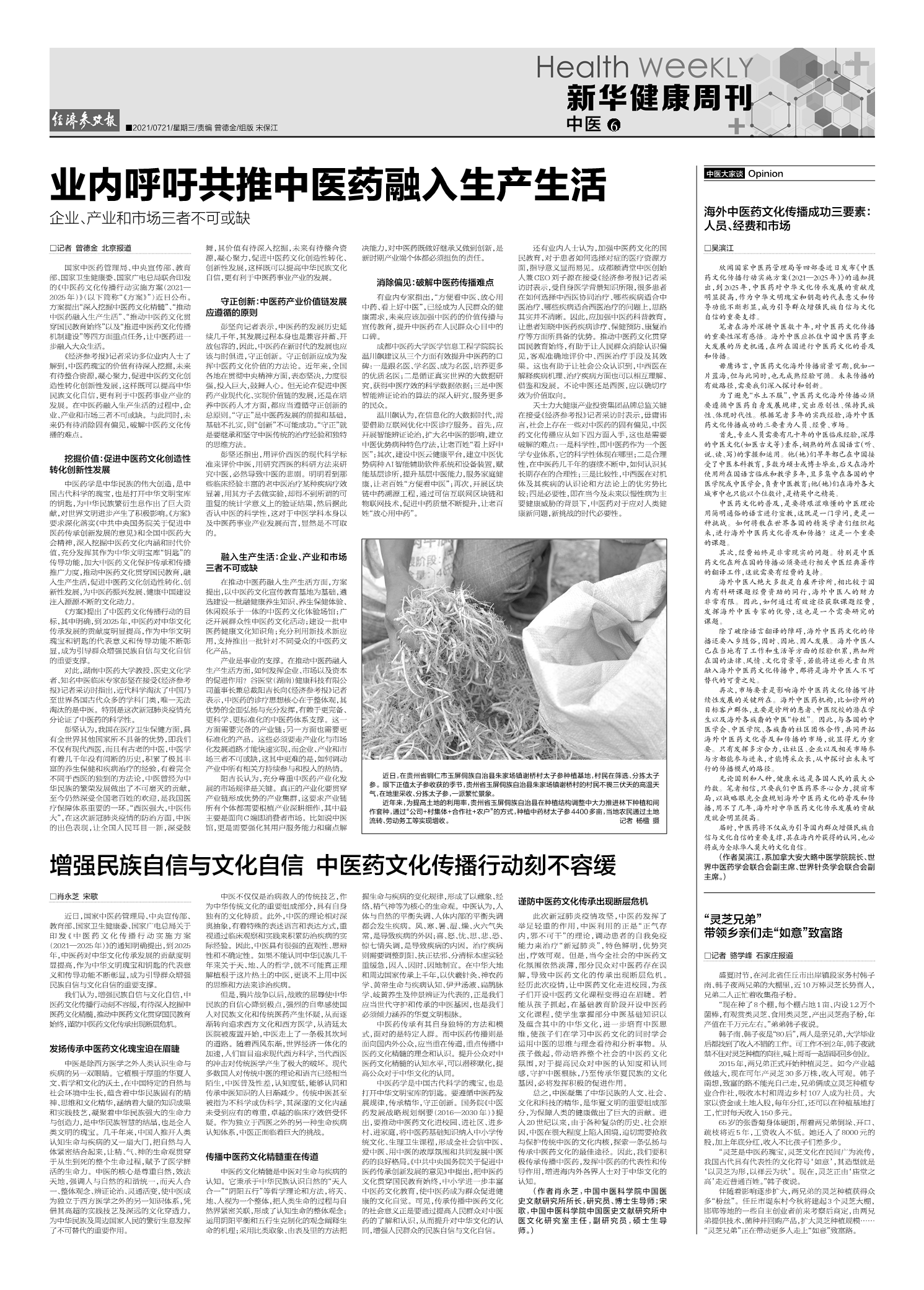 《经济参考报》记者采访多位业内人士了解到,中医药瑰宝的价值有待深入挖掘,未来有待整合资源,凝心聚力,促进中医药文化创造性转化创新性发展,这样既可以提高中华民族文化自信,更有利于中医药事业产业的发展。在中医药融入生产生活的过程中,企业、产业和市场三者不可或缺。与此同时,未来仍有待消除固有偏见,破解中医药文化传播的难点。